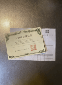全額返金保証書がありました。